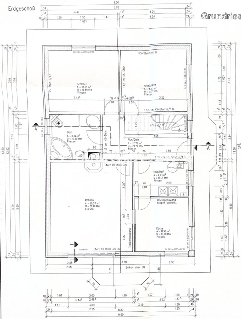 - Etagen: Zwei voll ausgebaute Etagen, Raumhöhe im EG von ca. 2,70m und im DG eine Höhe von 2,60m